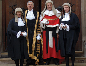 Above (L to R): Baroness Scotland KC on 4 July 2007, the day she was sworn into office as Attorney General, pictured with Jack Straw, the Lord Chancellor; Lord Phillips, the Lord Chief Justice; and Vera Baird KC, the second woman to hold the post of Solicitor General. Patricia Scotland took silk in 1991, the first Black woman to do so, and went on to become a Deputy High Court Judge, the first Black woman to be appointed in that role. She then joined the House of Lords in 1997 to start her political career, most notably as Attorney General 2007-10 – again, the first woman and first person of colour to hold that position. She was Secretary-general of the Commonwealth of Nations 2016-25 and is an associate member of 4pb.
