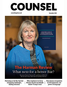 In the November 2025 issue of Counsel, Baroness Harman and Barbara Mills KC talked to Lachlan Stewart about the review’s impact, the challenges ahead and the crucial next steps. See also the Bar Council’s Taking action post Harman: quick guide for chambers; the Bar Council’s Action plan; and ‘Safeguarding aspiring barristers’, Sam Mercer and Rachel Krys, Counsel May 2025.