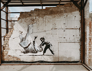 ‘Since the judgment I have given each of the counsel and solicitor team a print of a Banksy mural and a first day edition of a Ukrainian postage stamp commemorating it. The mural – painted on the side of a half-destroyed building in Ukraine in the early days of the war – shows a small boy overthrowing, in judo fashion, a much bigger man resembling Vladimir Putin.’ In Otty’s room he has his own copy of this print and stamp as well as a ‘very nice’ letter of thanks to the team from President Zelenskyy.